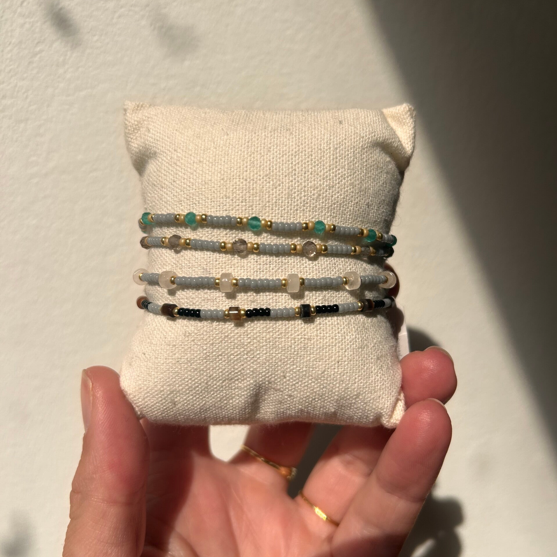 Prachtige handmade armbandjes van hoge kwaliteit. Deze armbandjes zijn gemaakt van het meest hoogwaardige elastiek, handgeregen met miyuki rocailles en zijn aangevuld met edelsteentjes, natuursteentjes en/of zoetwaterpareltjes.